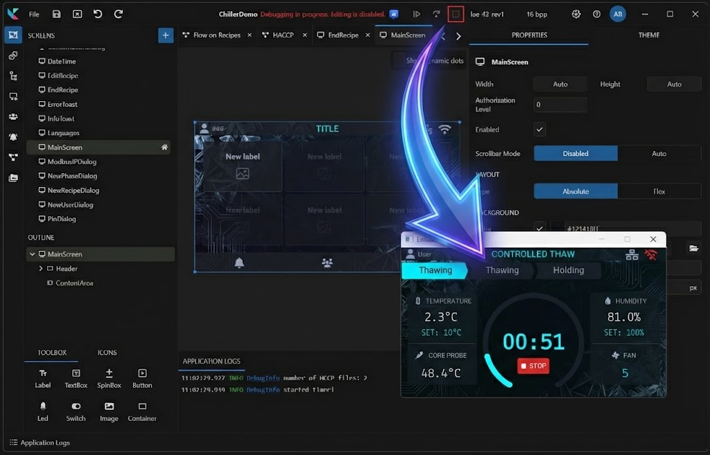 Test your entire application — UI, logic, and communication — instantly without waiting for compilation. See changes in real-time and iterate at the speed of thought.
