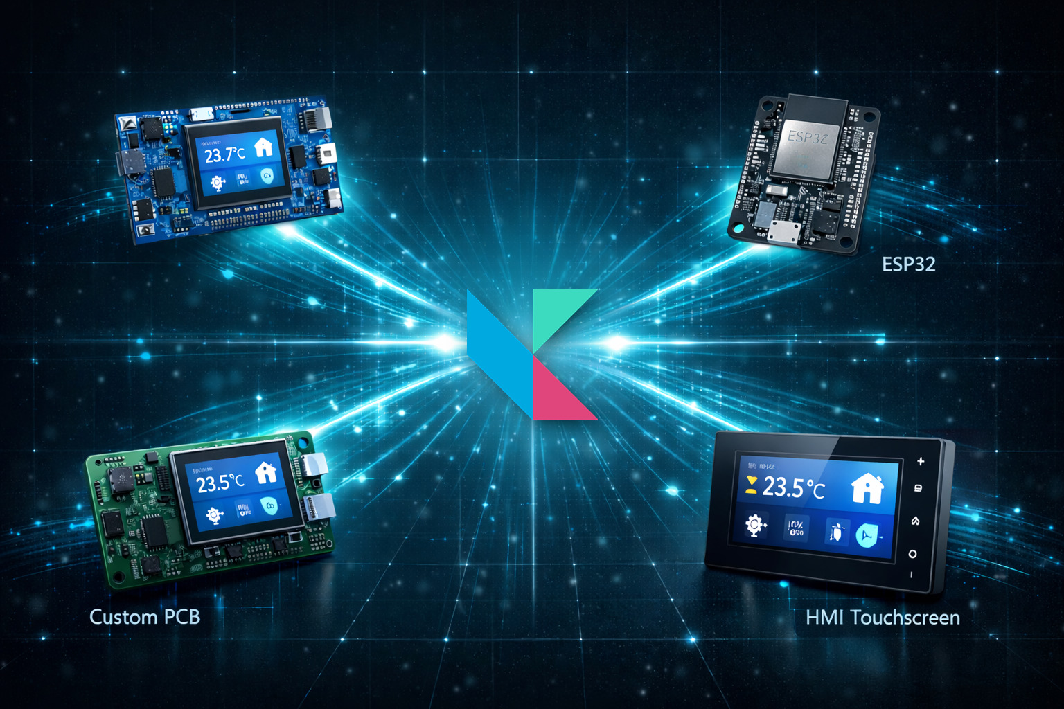 Using proprietary hardware? Define your custom board configuration — MCU model, I/O setup, display, flash, RTC — and receive a custom SDK through Oktima Cloud. Same powerful workflow, your unique hardware.